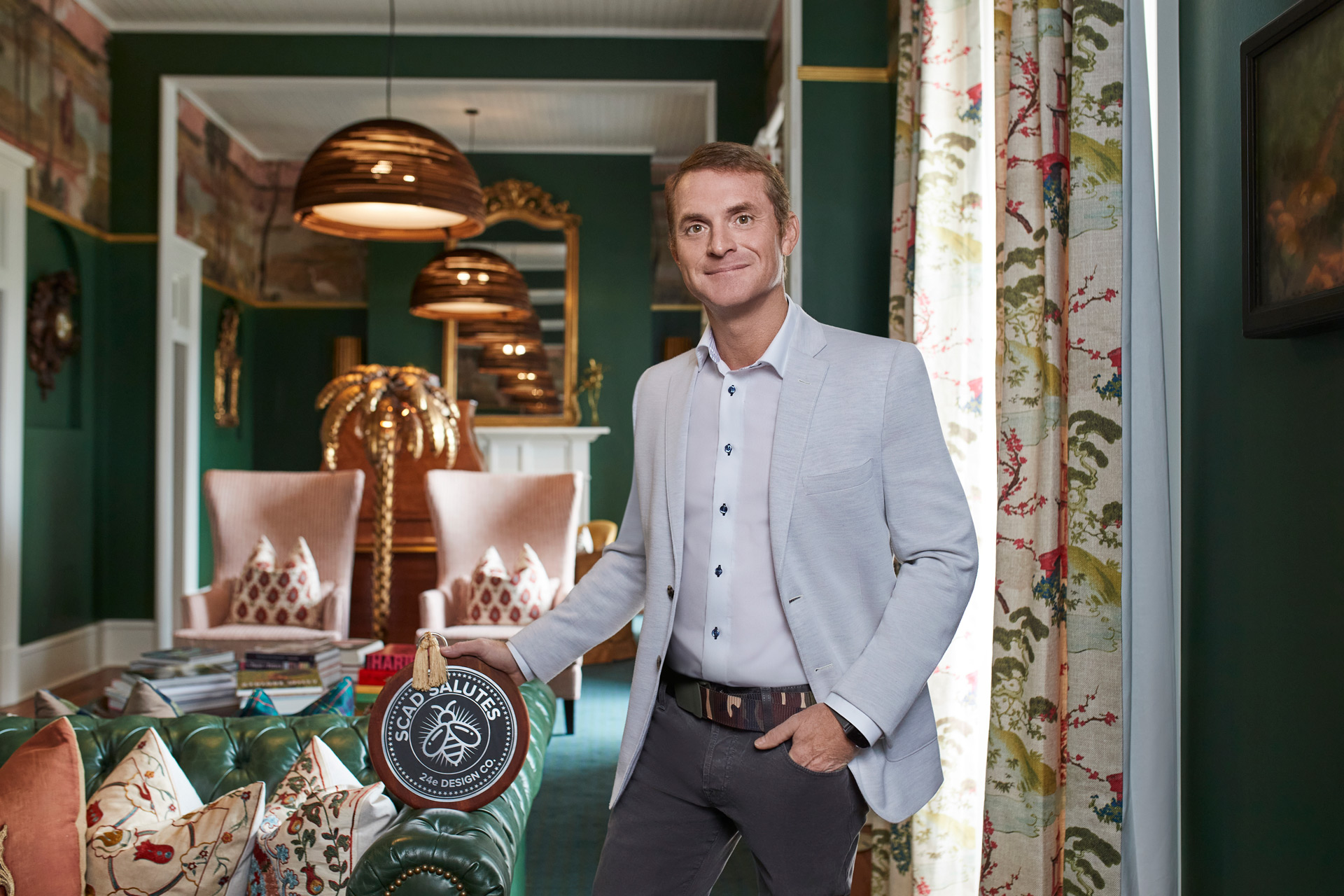 Pritpal Singh, general manager of luxury hotel Perry Lane, poses with the SCAD Salutes award.